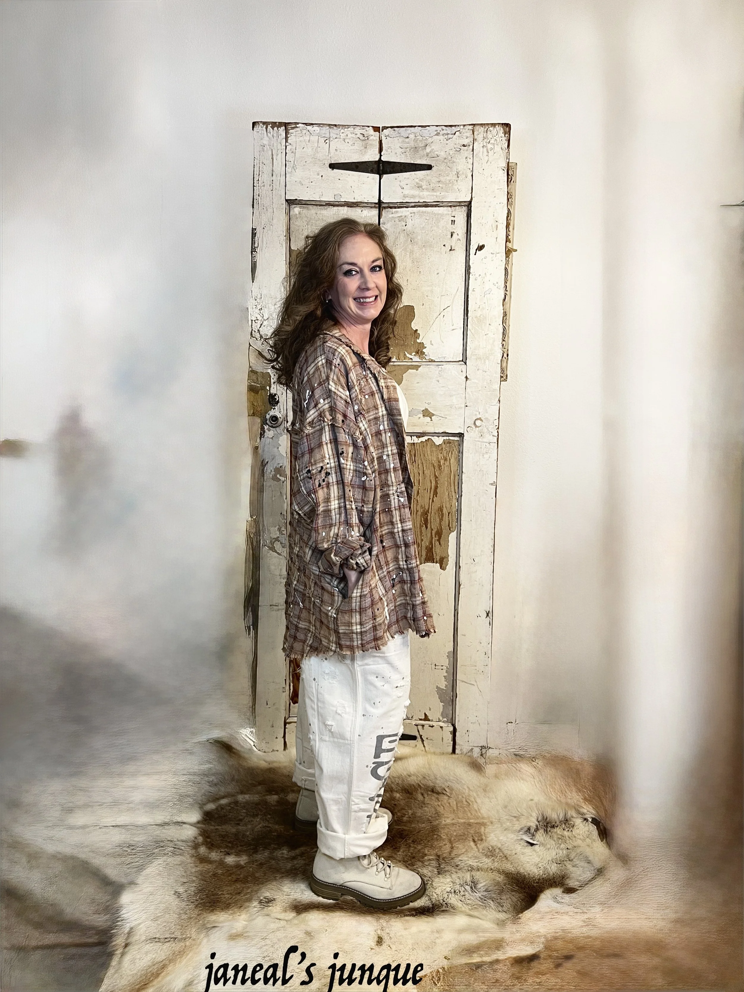I ams showing it with the Jaded Gypsy Parchment Peace & Love Jeans - also available on website while supplies last.